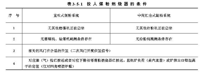 注:煤粉燃烧器投运后,应闭锁表中的第6项。