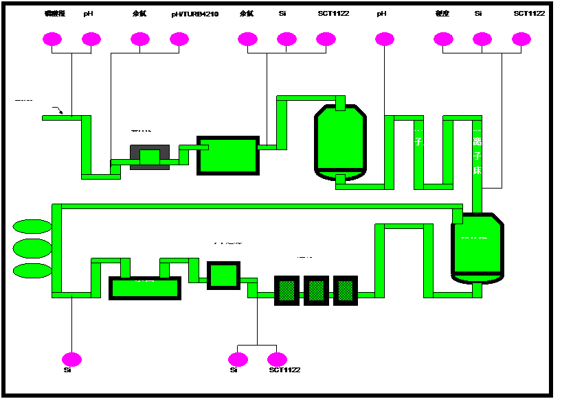 整个系统环节都在检测可溶性硅含量是为了可靠地检控降低矿化度设备的效能,并掌握下流可溶性硅的含量。
