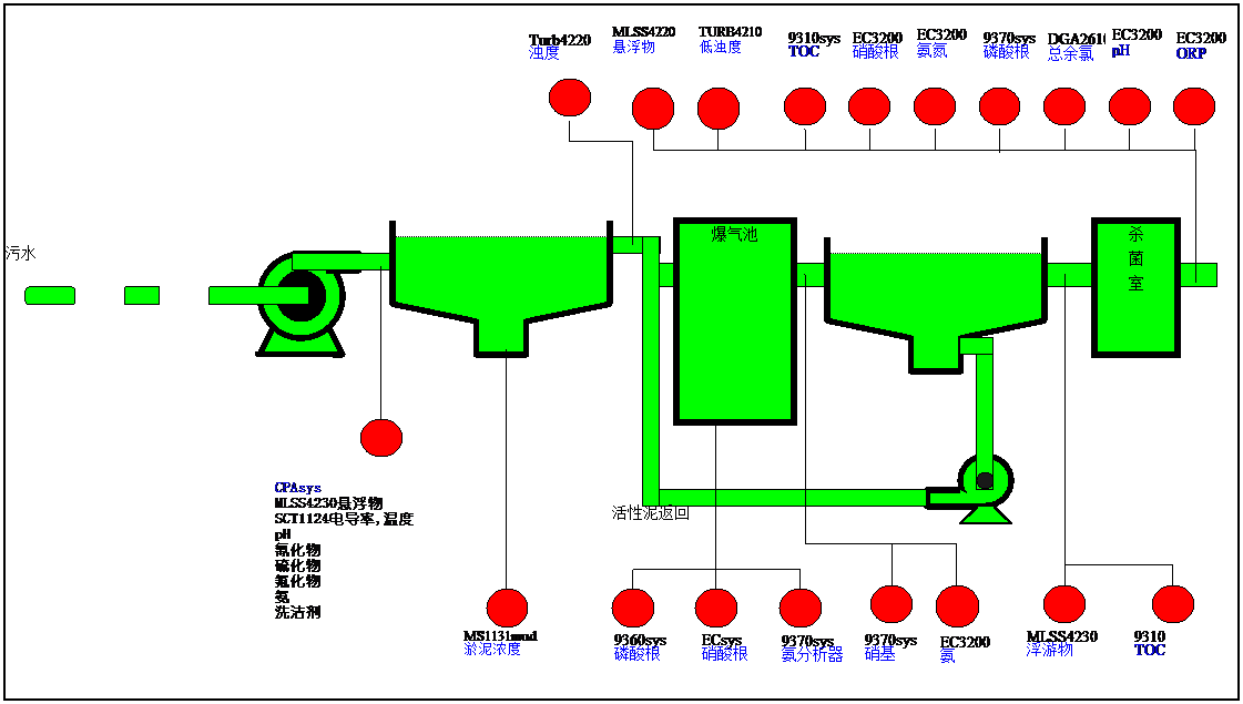 废水的pH,电导率和碱度对生物处理过程是非常重要的。通常pH需要连续监控,对一些类型的废水电导率检测是必要的,市政废水有粪便垃圾的必然有氯化工艺,测试氯的仪器也就很有帮助。