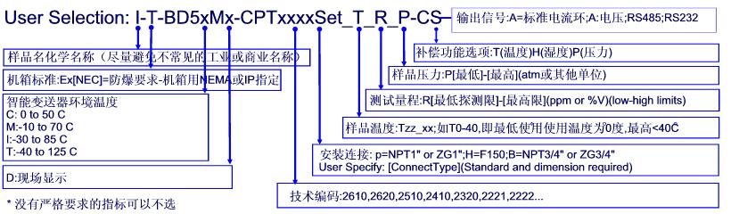 l BD5后面的2个字符“xyz”分别代表耐候性(C=商用级,M宽温型,I工业级,T军品)、处理器级别(S=小型处理器,B中型,M中大型,C大型)、和显示器(Dxx,变送器一般带2x16LCD)。具体含义请参考有关BD5的选型资料。