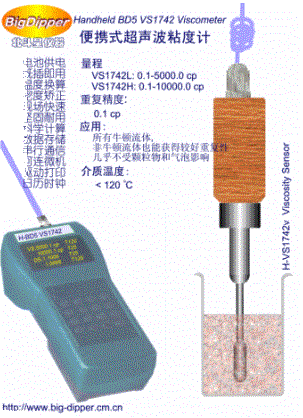 n          只要将坚固的不锈钢探头插入液体中就可以测出其粘度。对容器和液体流量没有特别的限制,只要能埋没探头即可。使用后简单地搽一下。