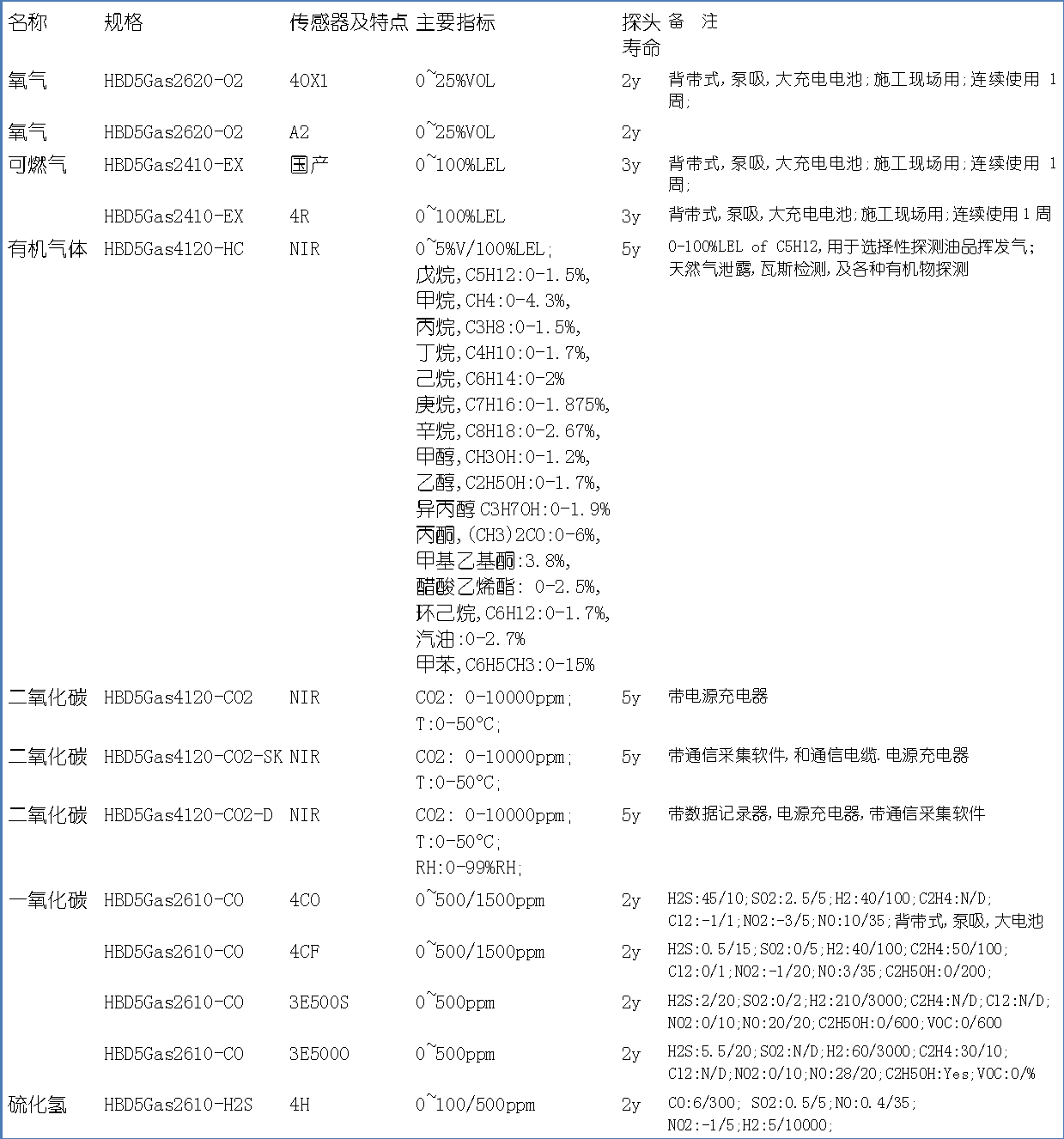 常见气体及量程资料 http://www.big-dipper.com.cn/Products/BD2000/2600/GasSensorList1C.htm
